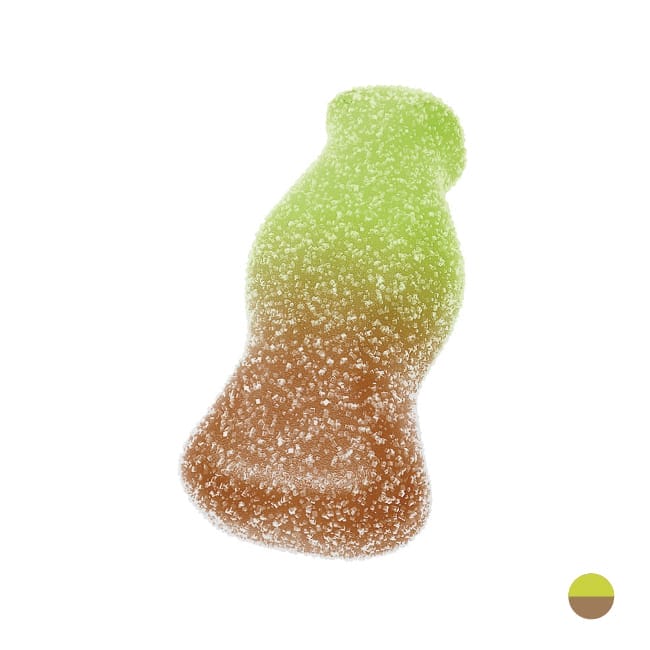 Sciroppo di glucosio, zucchero, acqua, gelatina alimentare, acidificante: acido citrico, aromi, coloranti : E100, E131, E150a.